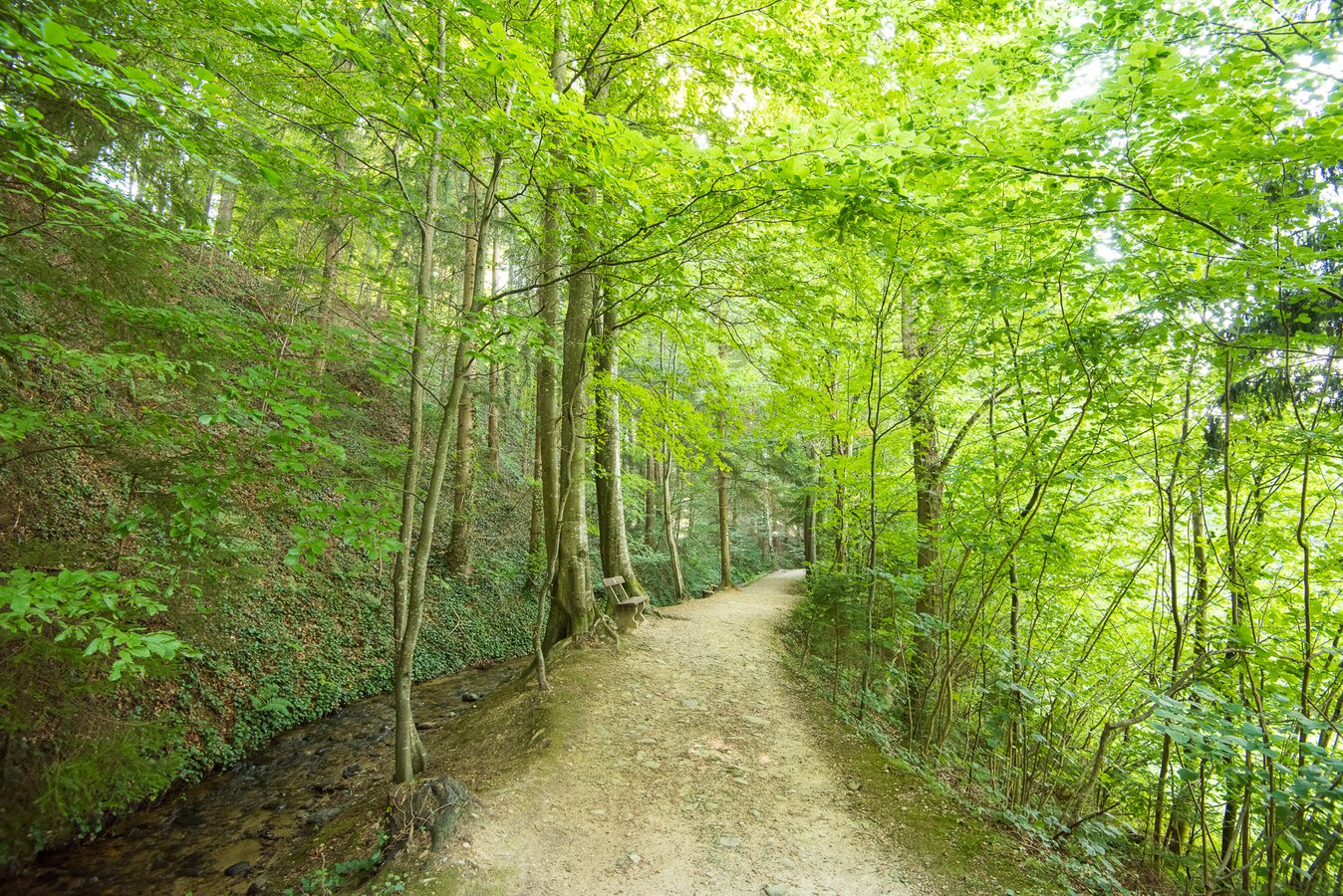 The Hinterbrühl also offers a children's playground, a running track, romantic, hilly walking paths with wonderful resting and relaxation areas and a sunbathing lawn with play facilities for children in the bed of the Safen stream. The bee show trail along the "Nature Park Adventure Trail" also begins here. The Hinterbrühl area is a guarantee for physical and mental relaxation!